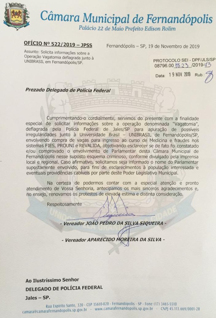 Vereadores pedem informações na PF sobre operação Vagatomia