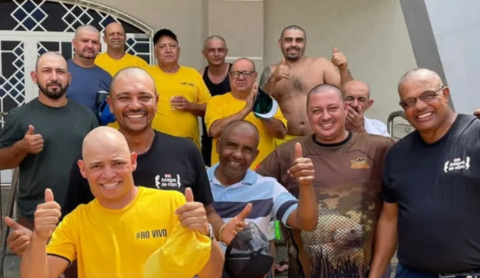 Grupo de amigos raspa a cabeça em apoio a comerciante com câncer