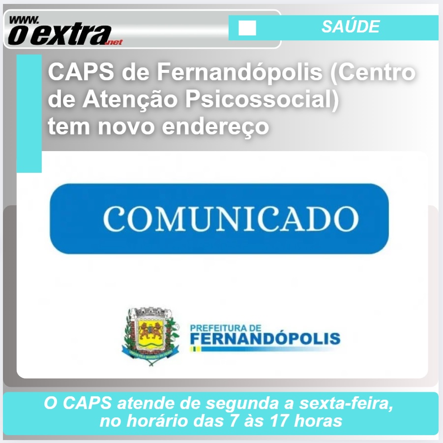O CAPS atende de segunda a sexta-feira, no horário das 7 às 17 horas
