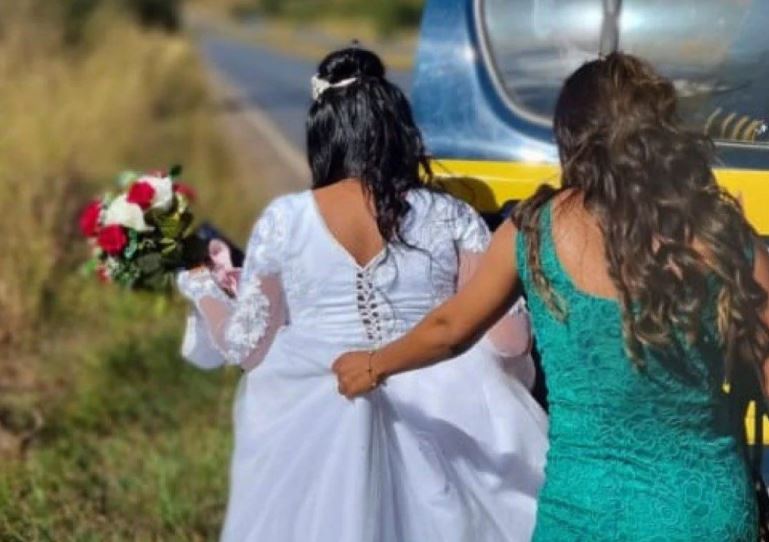 Noiva é levada por policiais da PRF para casamento após carro quebrar