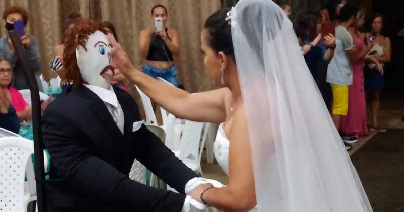 Mulher se casa com boneco de pano em cerimônia inusitada em Minas