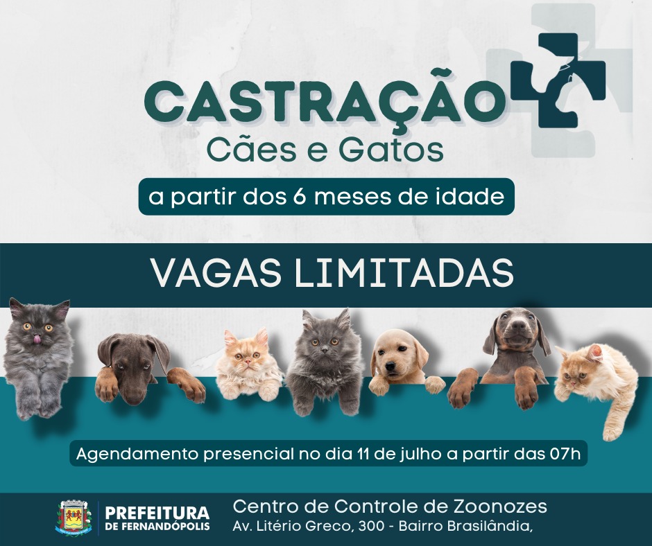 Agendamento para castração em Fernandópolis é na próxima segunda, 03