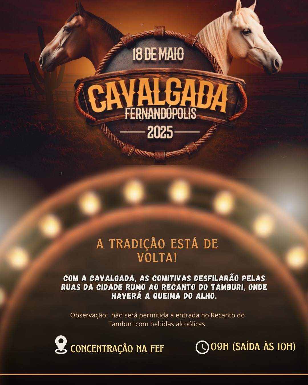 Fernandópolis realiza Cavalgada e Queima do Alho no dia 18 de maio