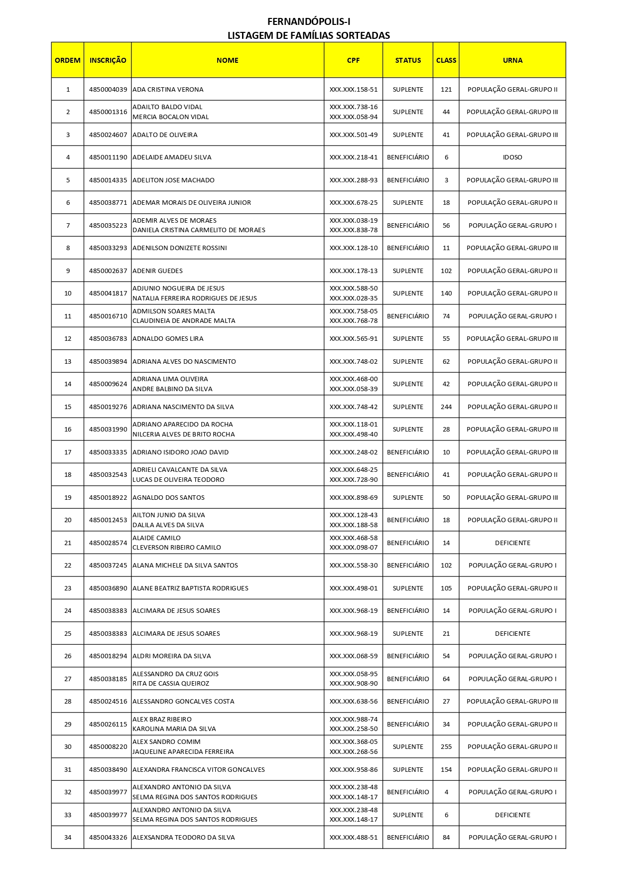 Prefeitura divulga lista dos sorteados e suplentes das casas da CDHU