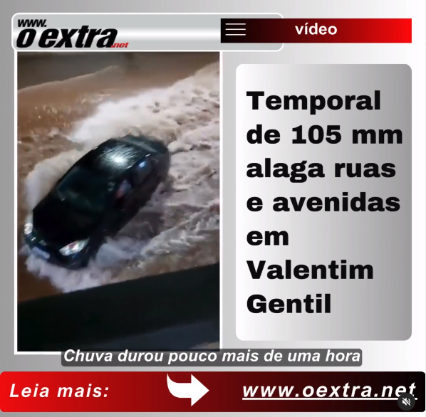 Temporal de 105 mm alaga ruas e avenidas em Valentim Gentil