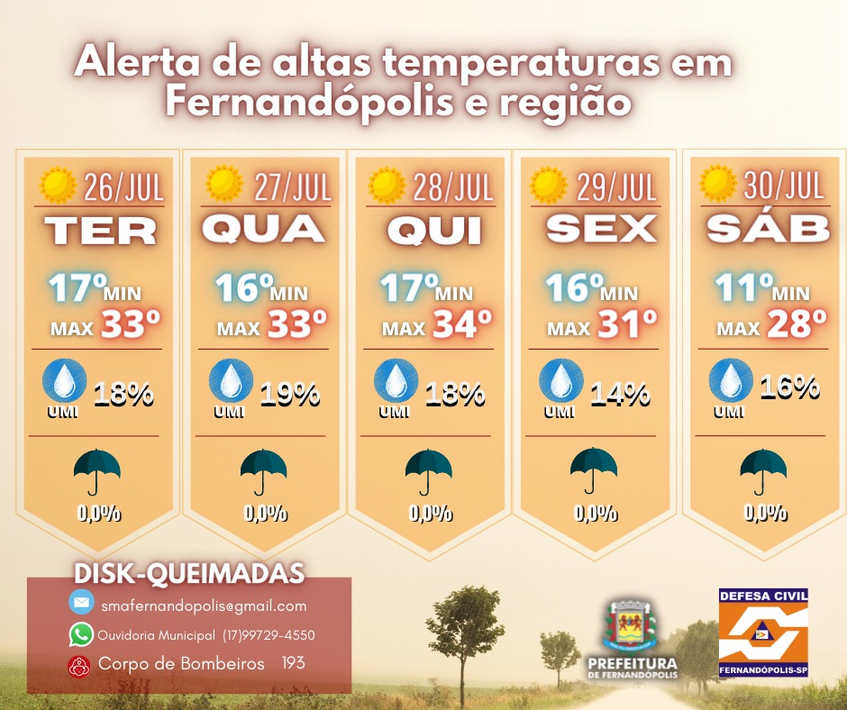 Temperatura em Fernandópolis começa a baixar a partir desta quarta-feira, 08