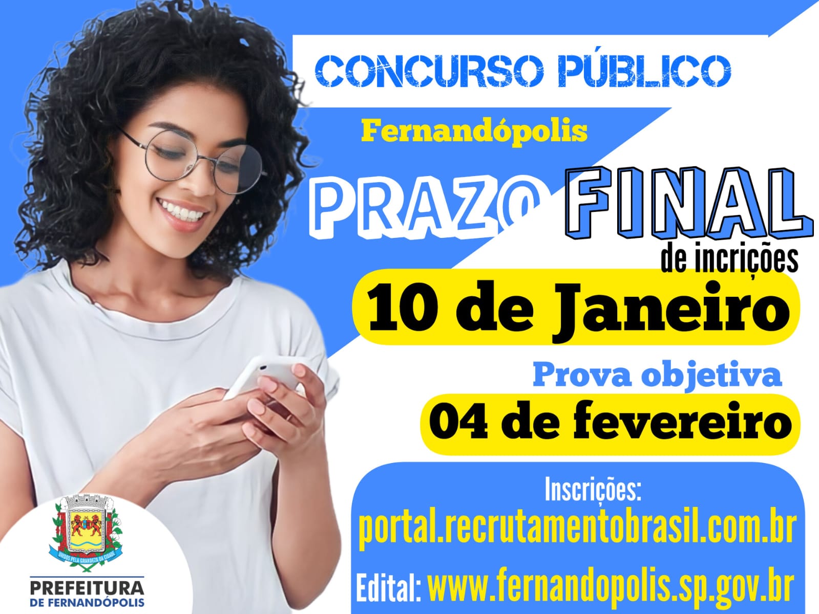 Inscrições para concurso da Prefeitura de Fernandópolis terminam hoje