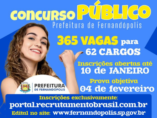 Fernandópolis abre inscrições para concurso público com 365 vagas