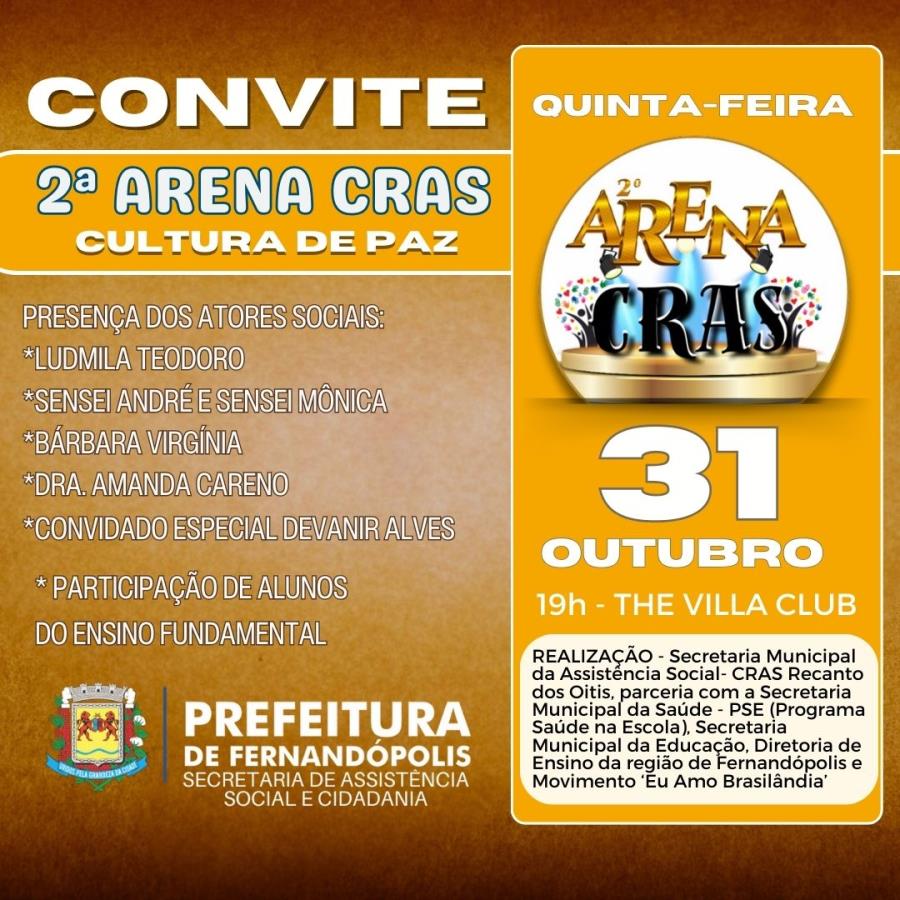‘2º Arena Cras’ acontece nesta quinta-feira, dia 31, em Fernandópolis