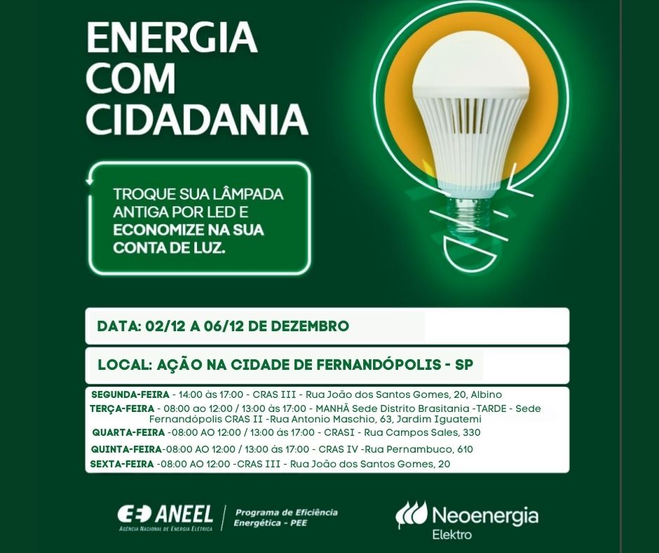 Projeto oferece troca de lâmpadas gratuitas em Fernandópolis