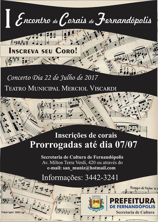 Inscrições do ‘1º Encontro de Corais’ são prorrogadas