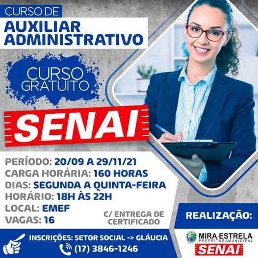 Mira Estrela e SENAI oferecem curso de Auxiliar Administrativo