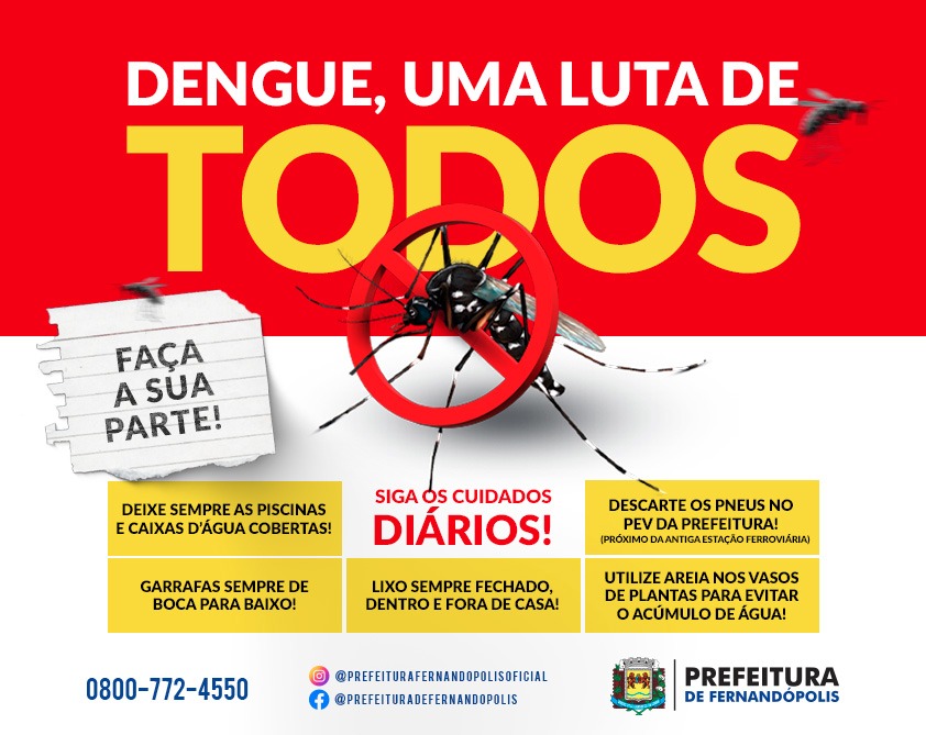 Em 2023, Fernandópolis registrou 173 casos de dengue