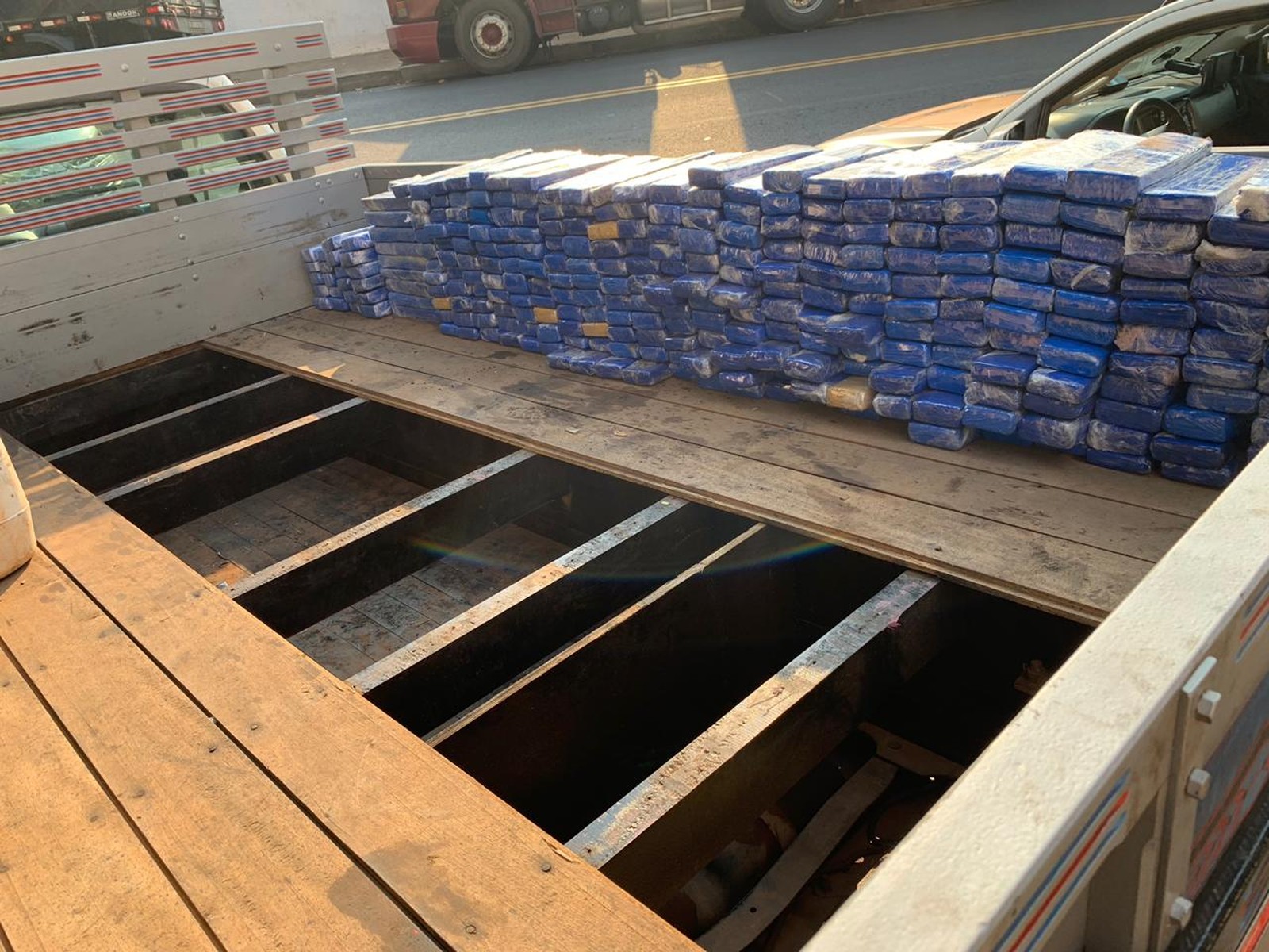 Droga estava acondicionada em 566 tabletes escondidos em fundo falso da carreta