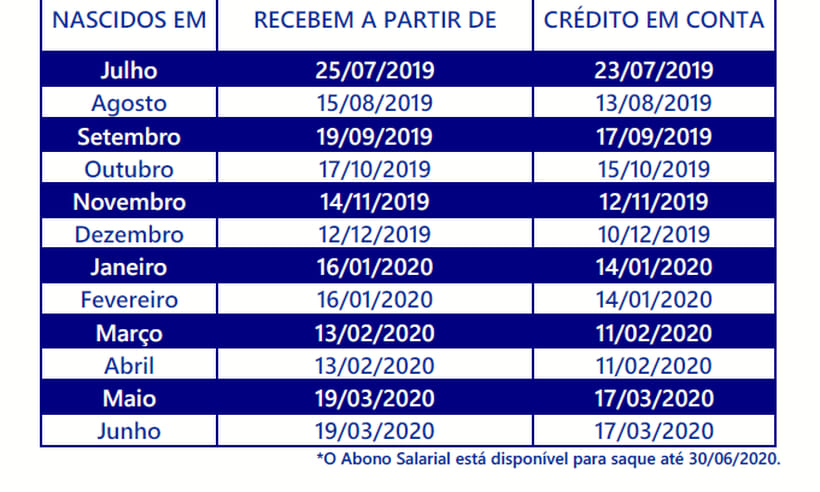 O valor do benefício pode ser sacado até 30 de junho de 2020