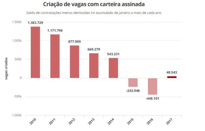 De acordo com dados do Caged, foram registradas 447 demissões e 472 contratações