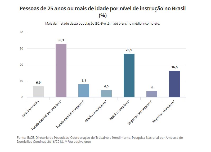 Mais da metade dos brasileiros ainda não concluiu a educação básica