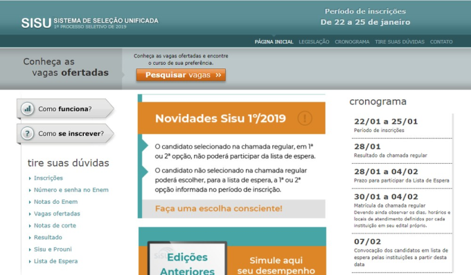 Resultado do Sisu 2019 será divulgado nesta segunda