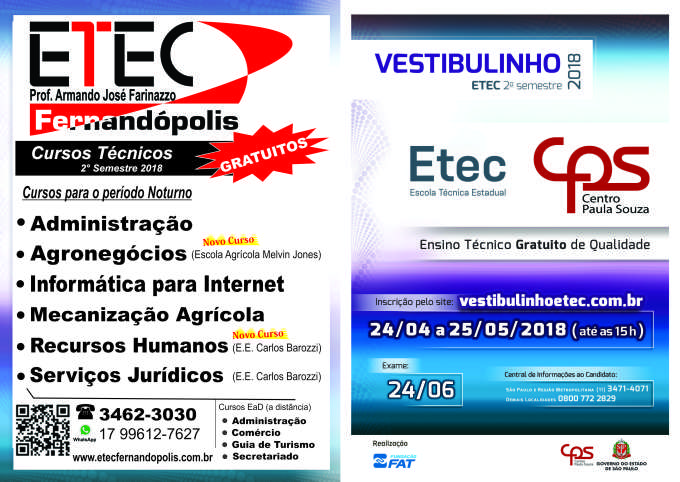 ETEC abre inscrições para vestibulinho com vagas para diversos curso