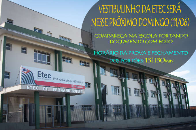 Exame do Vestibulinho das Etecs será no próximo domingo, dia 11