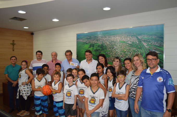Alunos do projeto ‘Basquete na Escola’ visitam gabinete do prefeit