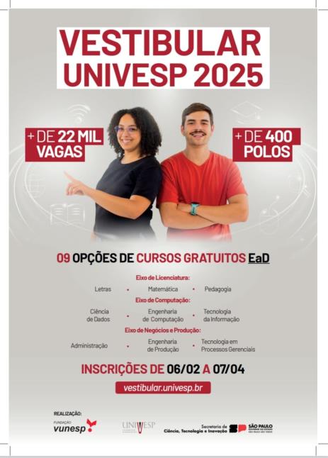 Até sexta-feira (11); ao todo, são 7.470 vagas nas Fatecs e 2.613 na Univesp