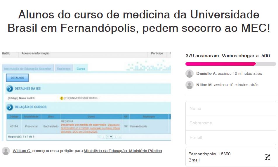 Alunos do curso de Medicina fazem abaixo-assinado contra a UB