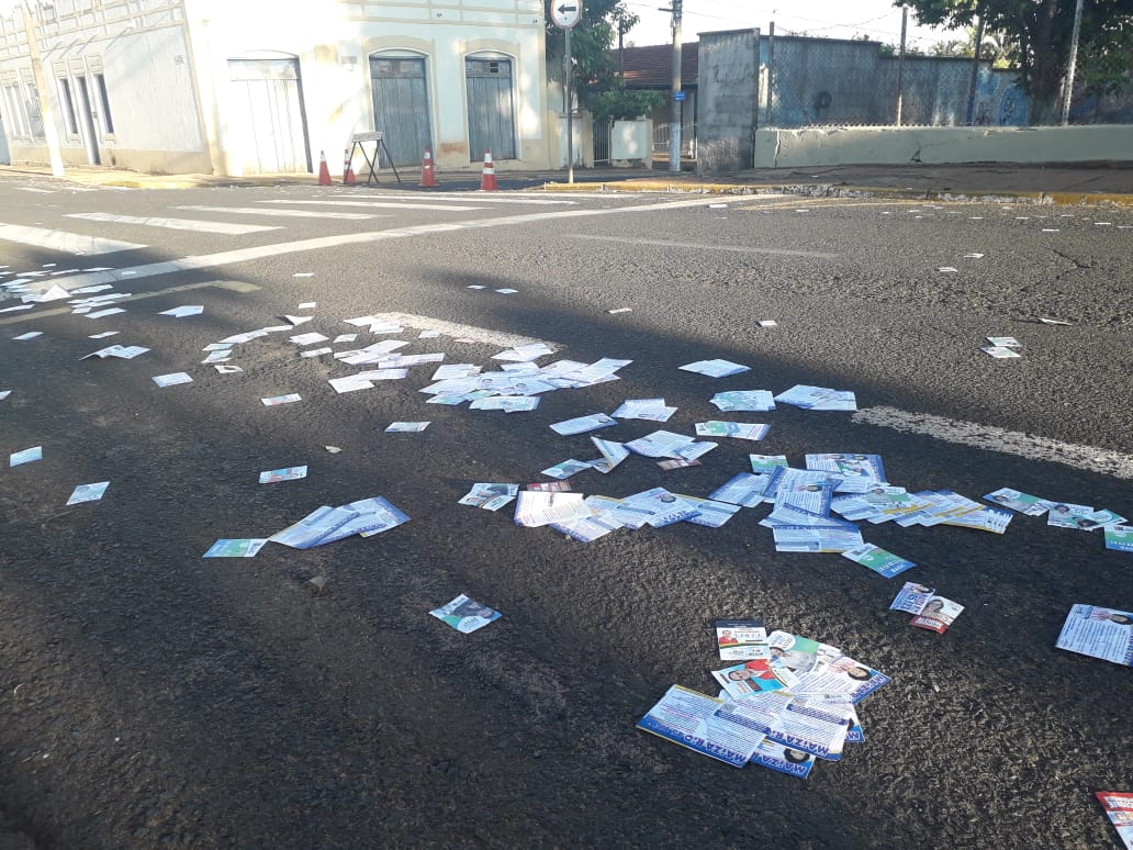 Em Fernandópolis, folhetos de candidatos foram espalhados pelo chão