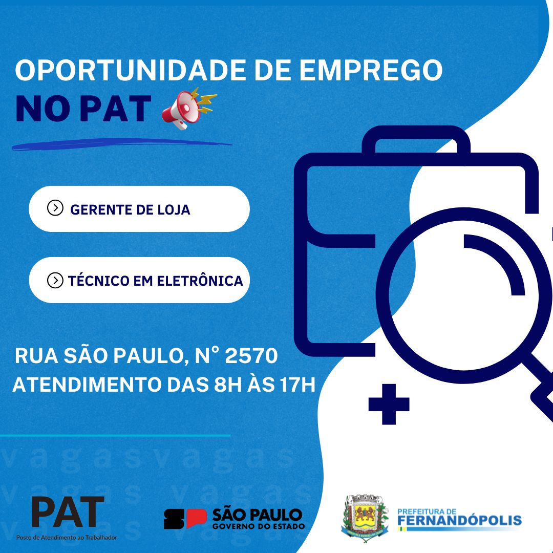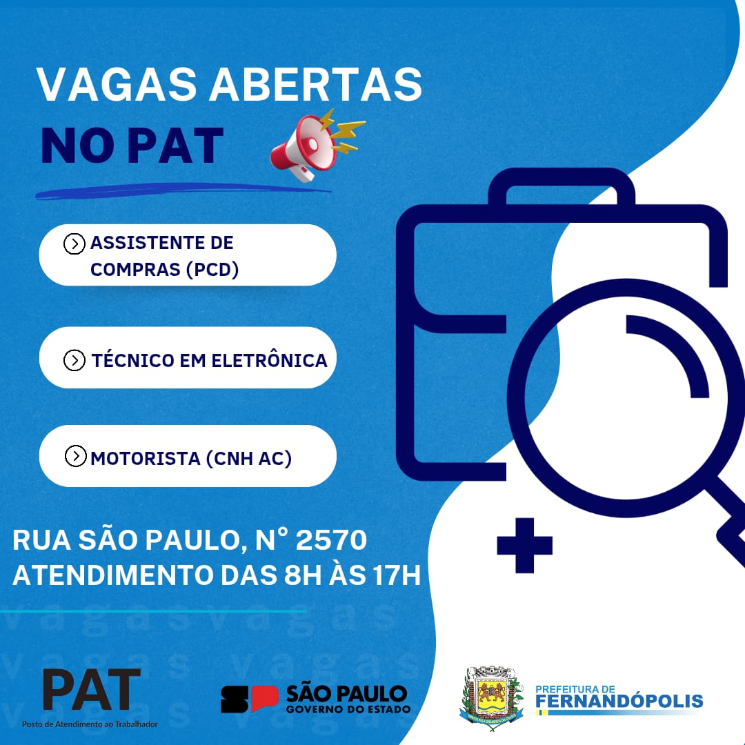 Oportunidades de emprego: PAT de Fernandópolis divulga novas vagas