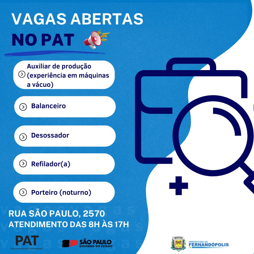 PAT de Fernandópolis divulga novas oportunidades de emprego