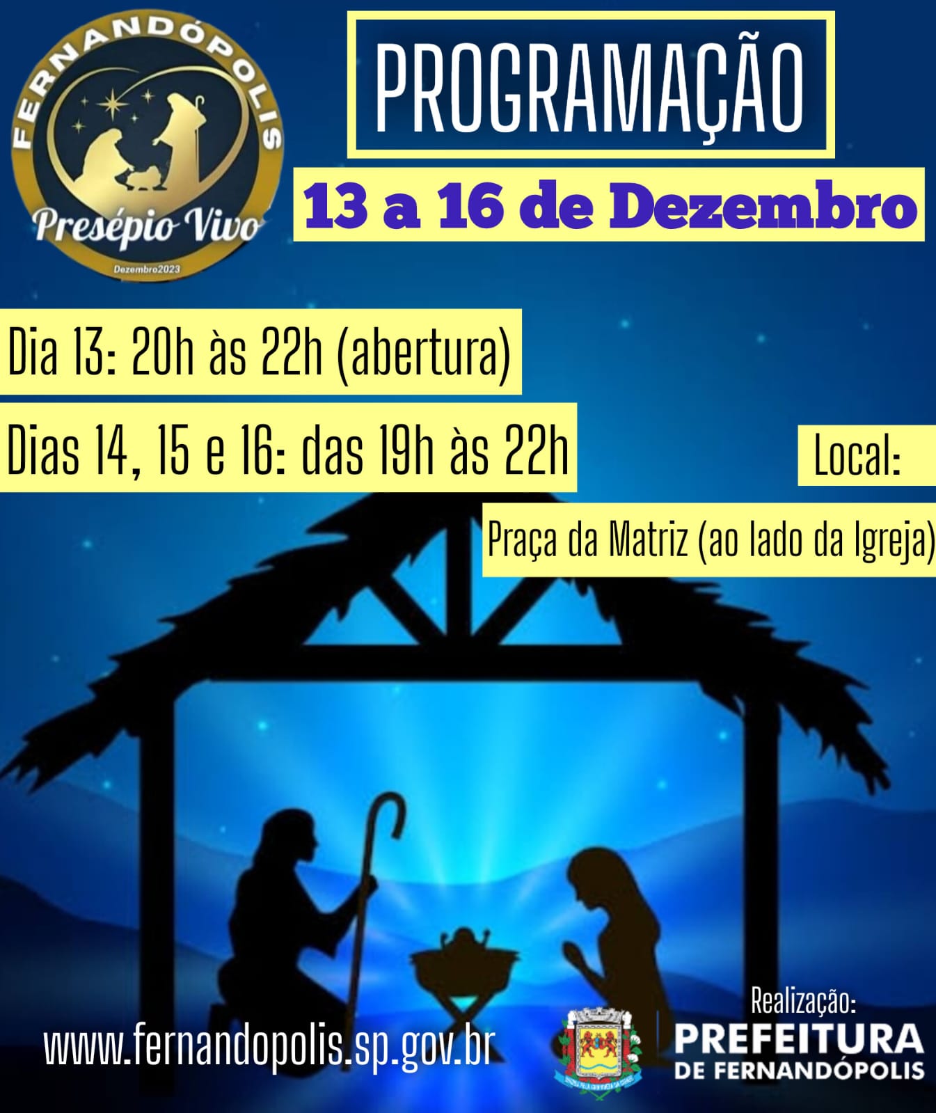 3º Presépio Vivo começa nesta quarta, 13, em Fernandópolis