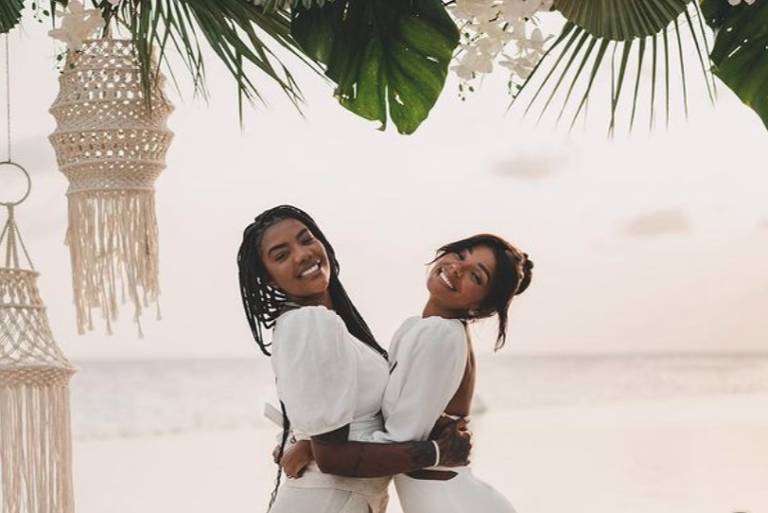 Ludmilla e Brunna Gonçalves renovam votos de casamento em viagem