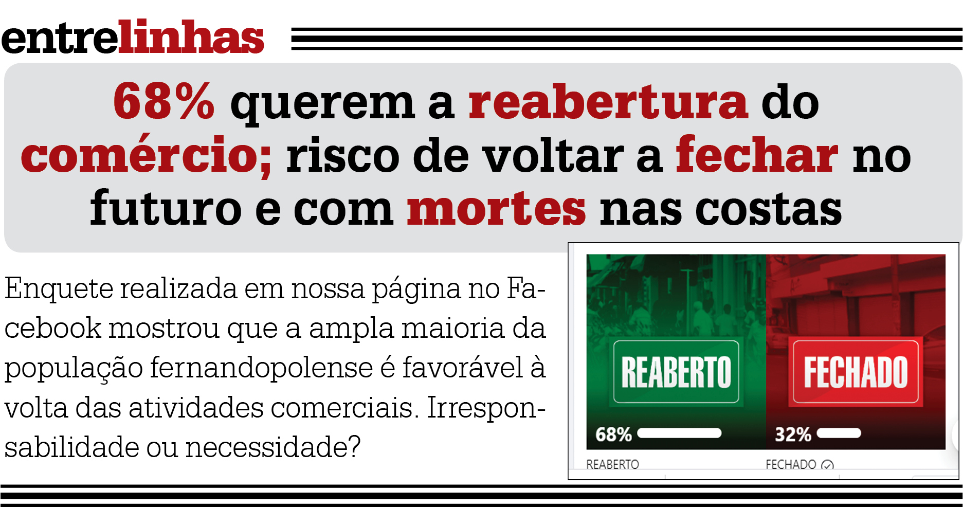69% querem a reabertura; risco de volta a fechar no futuro