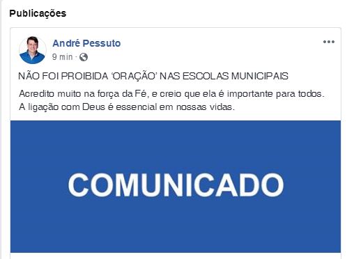 Em comunicado, prefeito salienta que irá manter oração nas escolas e creches