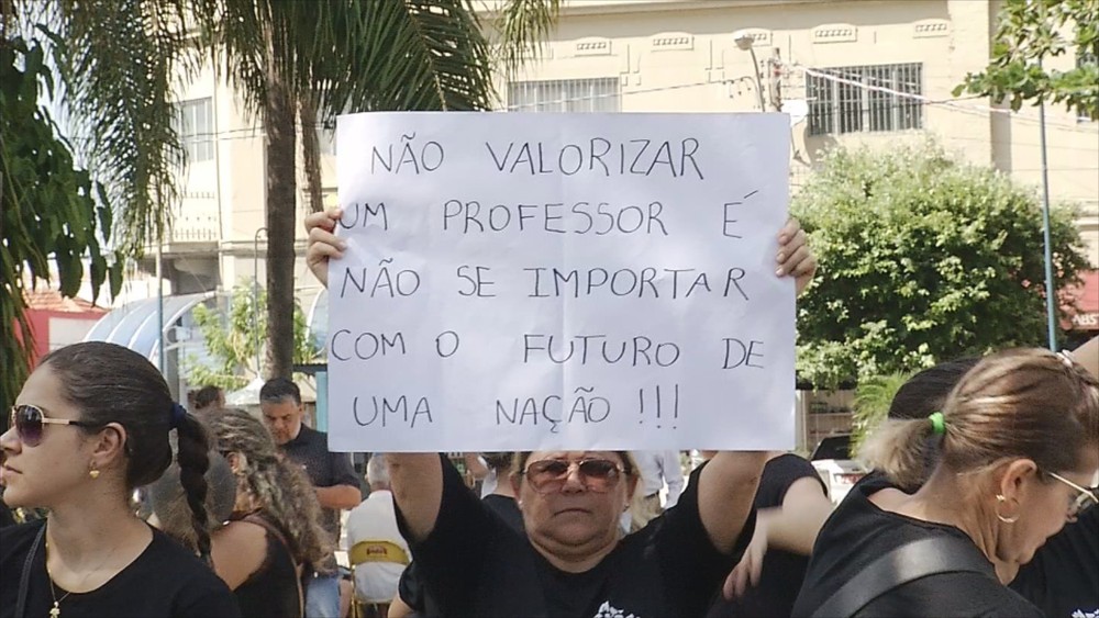 Cerca de 50 profissionais se reuniram na frente da prefeitura nesta manhã
