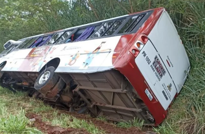 Ônibus que transportava equipe de futebol americano tomba em rodovia
