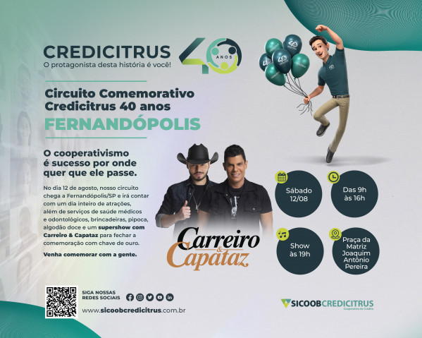 Apresentação no dia 12 integra Circuito Comemorativo Credicitrus 40 anos