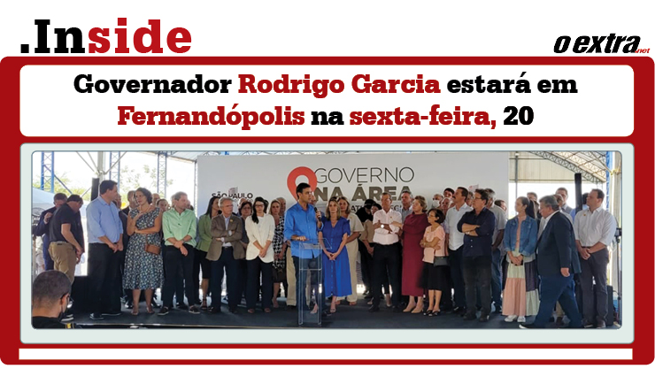 Governador Rodrigo Garcia estará em Fernandópolis na sexta-feira, 20