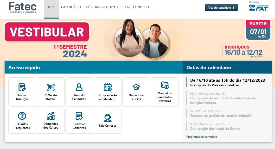 Fatecs abrem inscrições para Vestibular do segundo semestre