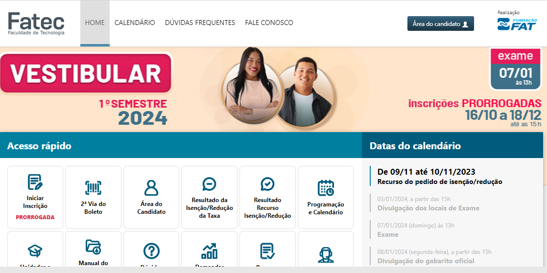 Prorrogada inscrição do Vestibular das Fatecs para o primeiro semestre