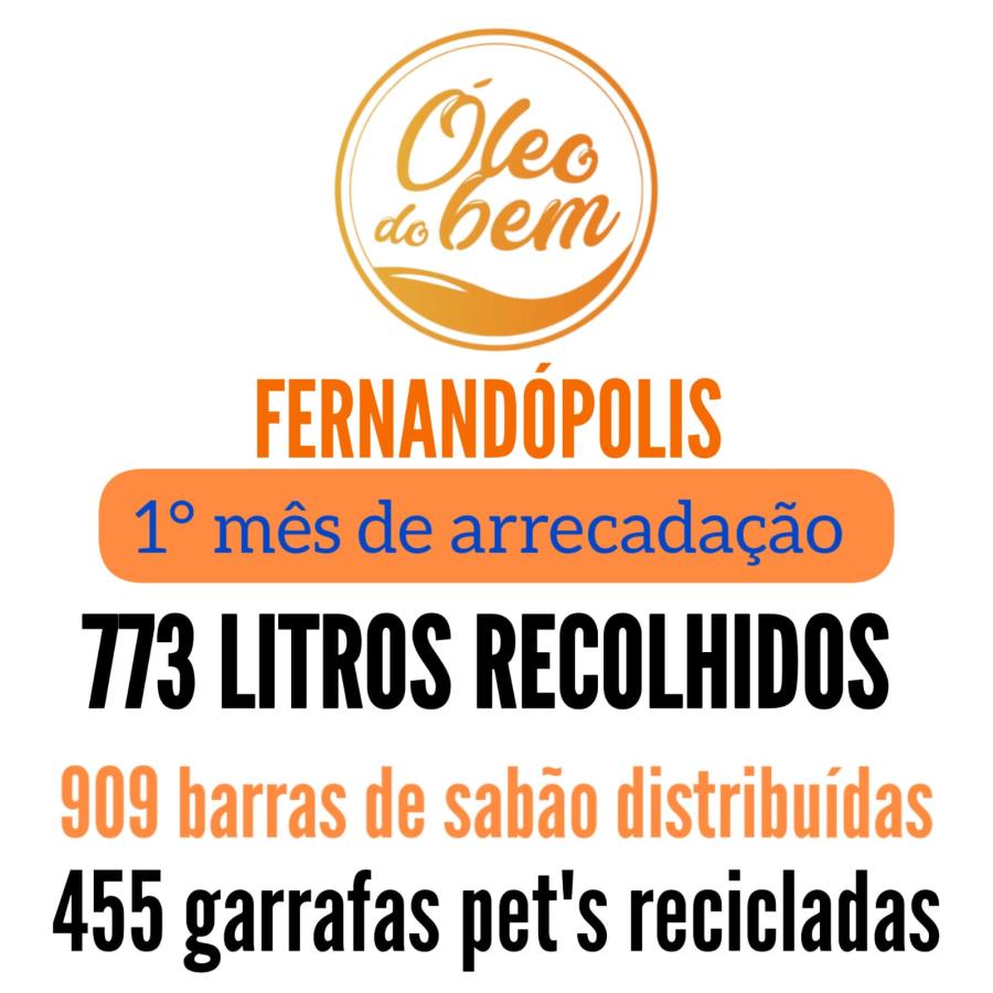 ‘Óleo do Bem’ arrecada em Fernandópolis 773 litros no primeiro mês
