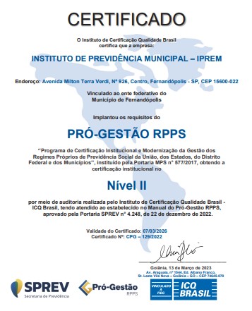 Certificado atesta que o IPREM adota as melhores práticas na sua gestão