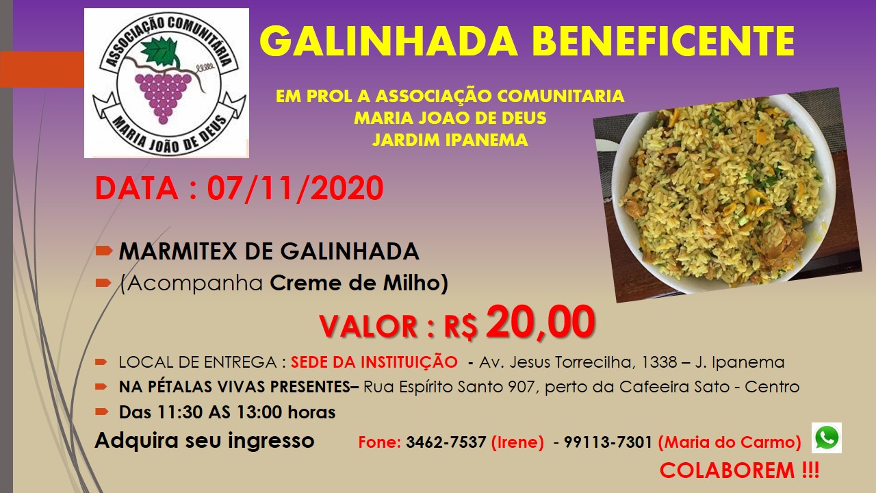 Associação Maria João de Deus venderá galinhada para gerar renda