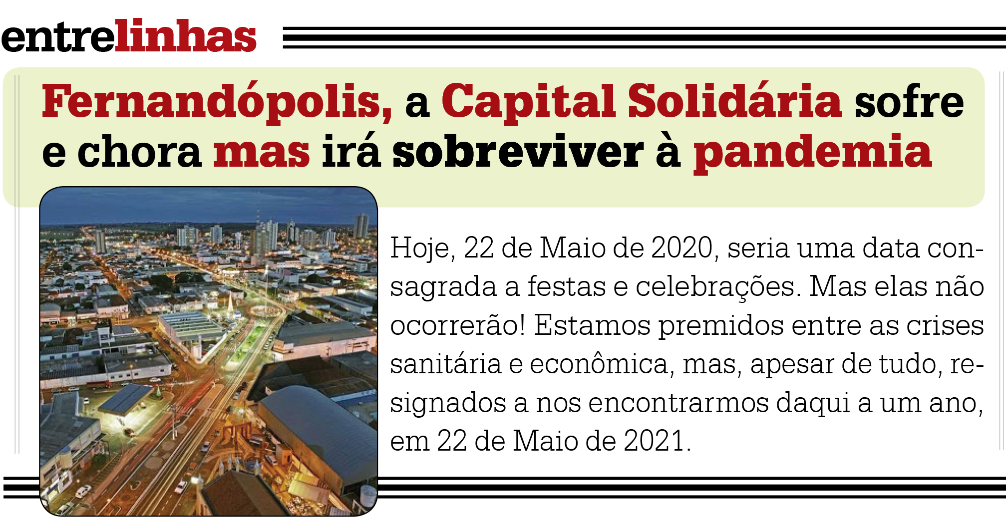 Fernandópolis, a Capital Solidária sofre e chora, mas irá sobreviver