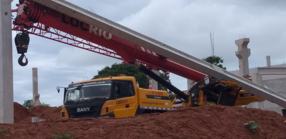 Viga de concreto cai sobre máquina durante construção de supermercado