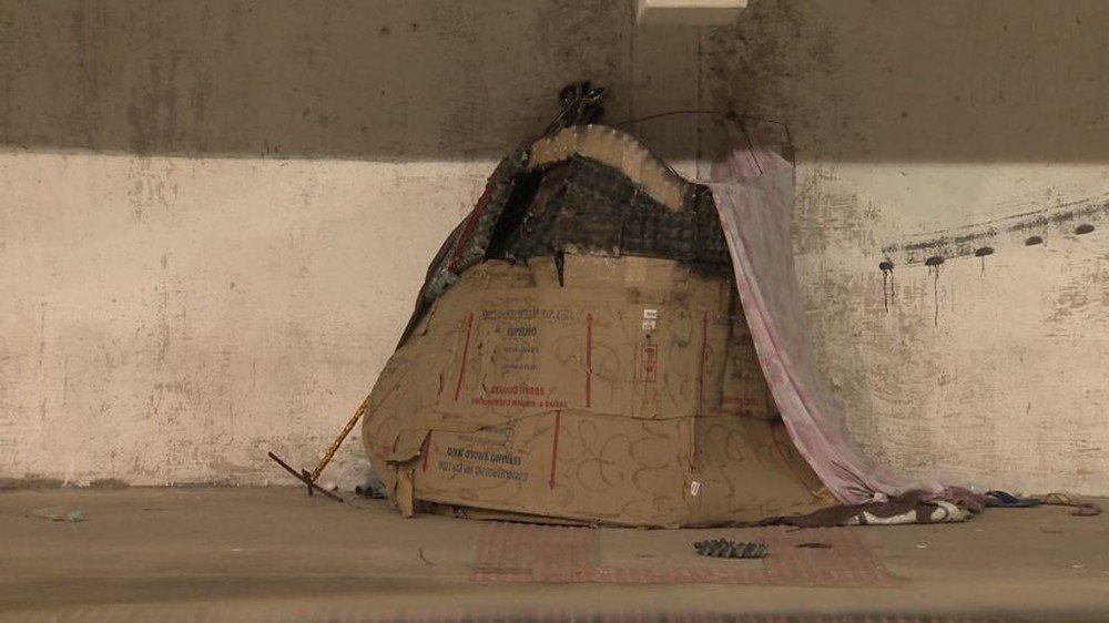 Moradores de rua improvisam abrigos nas madrugadas frias