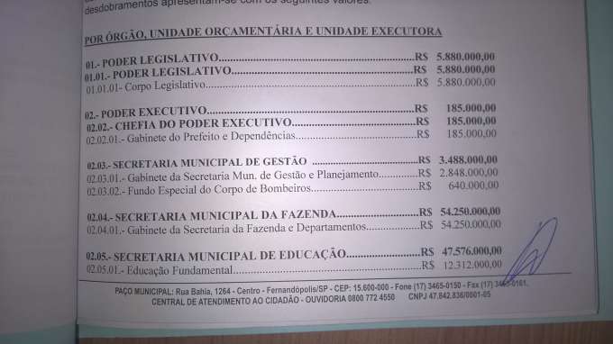 Prefeitura terá R$ 233 milhões para administrar Fernandópolis ano q