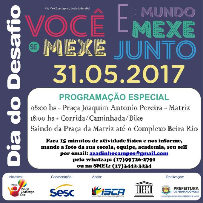 Município participa nesta quarta-feira, 31, do ‘Dia do Desafio’