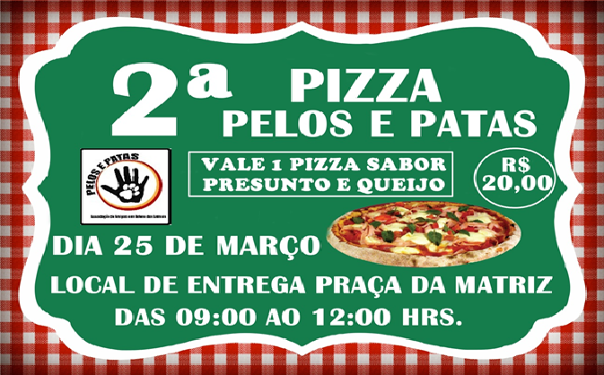 Pelos e Patas realizará neste sábado 2ª Pizza Solidária