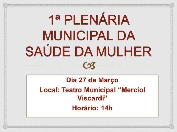 Plenária da Saúde da Mulher acontece na próxima segunda-feira, 27